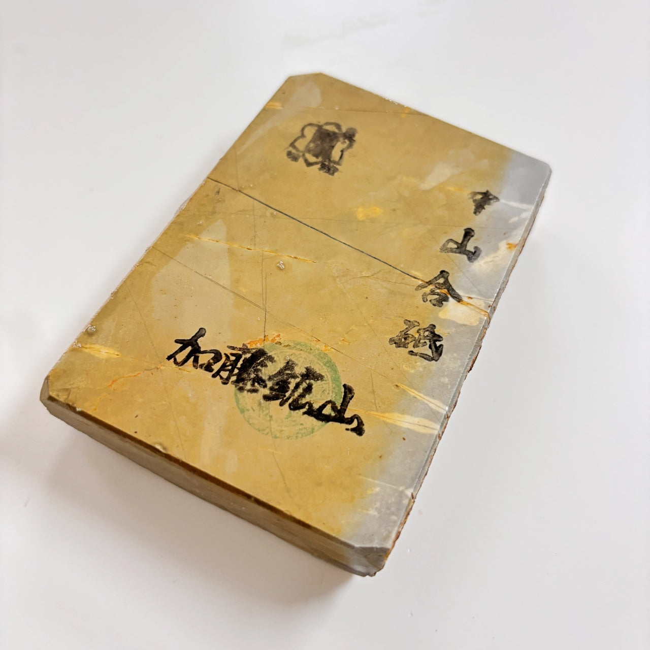 場所:京都府梅ケ畑方面 用途:仕上げ砥石 粒度:#10000-#12000 地層・特徴:巣板 硬さ: 3.5/5 泥: 標準、名倉砥石無しでも使用可能 筋:影響なし 重さ: 430g 寸法:縦77mm 横73mm 高さ29mm 当たりそうな筋に見えますが、地は引きませんでした。 ※出品者の感覚によりますので、あくまで参考情報として、商品の状態は画像にてご判断ください。 ※サイズは最大寸法を記載しています。