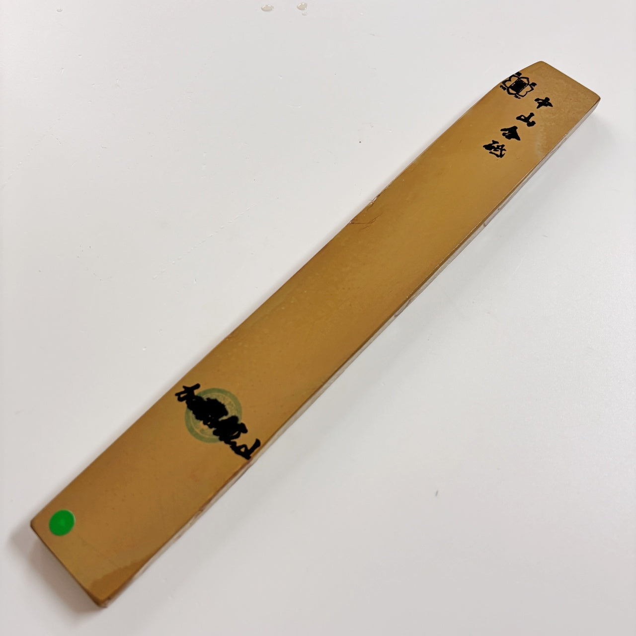 場所:京都府梅ケ畑方面 用途:仕上げ砥石 粒度:#10000-#12000 地層・特徴:黄板 硬さ: 3.5/5 泥: 標準、名倉砥石無しでも使用可能 筋:影響なし 重さ: 275g 寸法:縦289mm 横40mm 高さ9mm ※出品者の感覚によりますので、あくまで参考情報として、商品の状態は画像にてご判断ください。 ※サイズは最大寸法を記載しています。